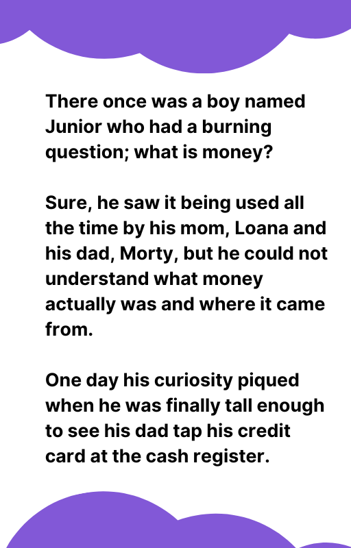 The concept of this e-book series originated when a father of 2 young boys was asked by his eight year old “what is money?”